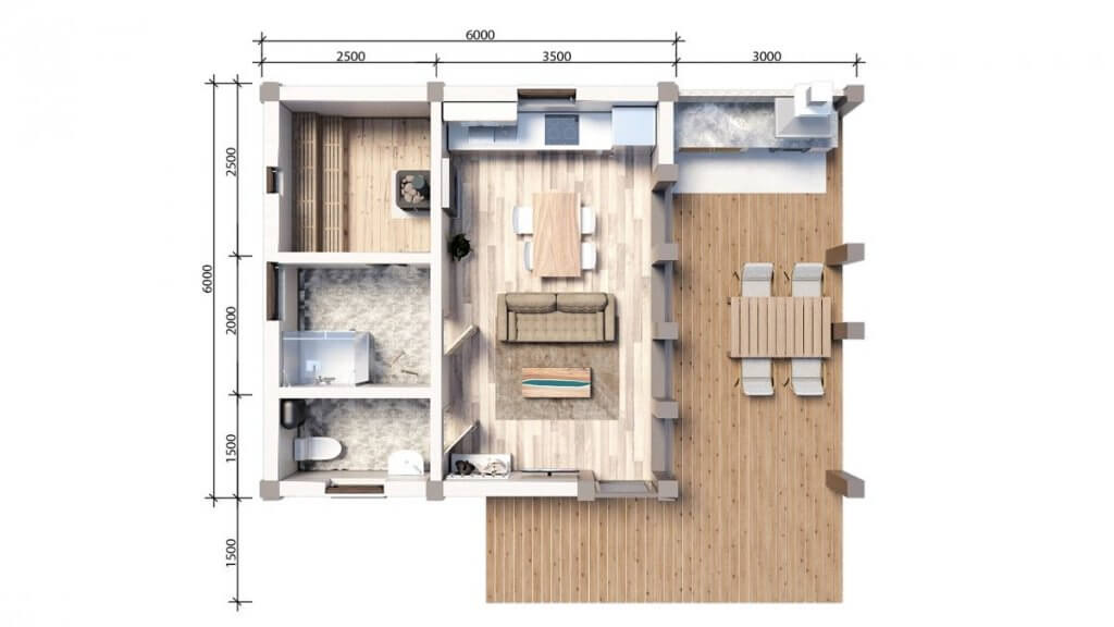 Изменить проектБаня из бруса фахверковая 9 на 6 "Бремен": Баня из бруса фахверковая – 9х6