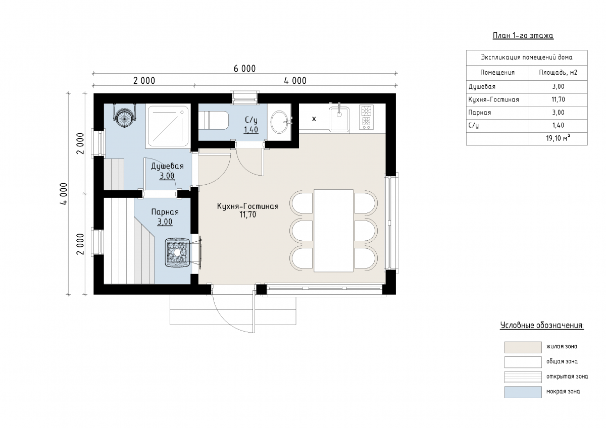 Современный стиль с элементами минимализма дополнен панорамными окнами, которые усиливают естественное освещение и визуально увеличивают пространство. Компактная планировка делает проект функциональным и удобным для небольших участков. Общая площадь внутренних помещений составляет 19 м², включая просторную кухню-гостиную 12 м², парную и душевую по 3 м², а также санузел 1,5 м². Рациональное распределение зон обеспечивает комфортный отдых и практичное использование пространства. Проект «Бирмингем» — идеальное решение для уединения или семейного отдыха. Лаконичный дизайн, функциональность и стиль делают его универсальным для любых участков.