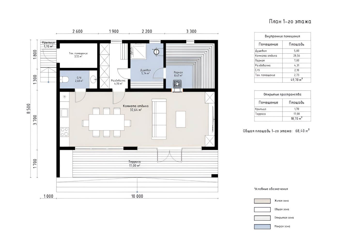 Изменить проектТаллин: Баня из газобетона 9х10 м в стиле Хай-тек с душевой, парной и комнатой для отдыха