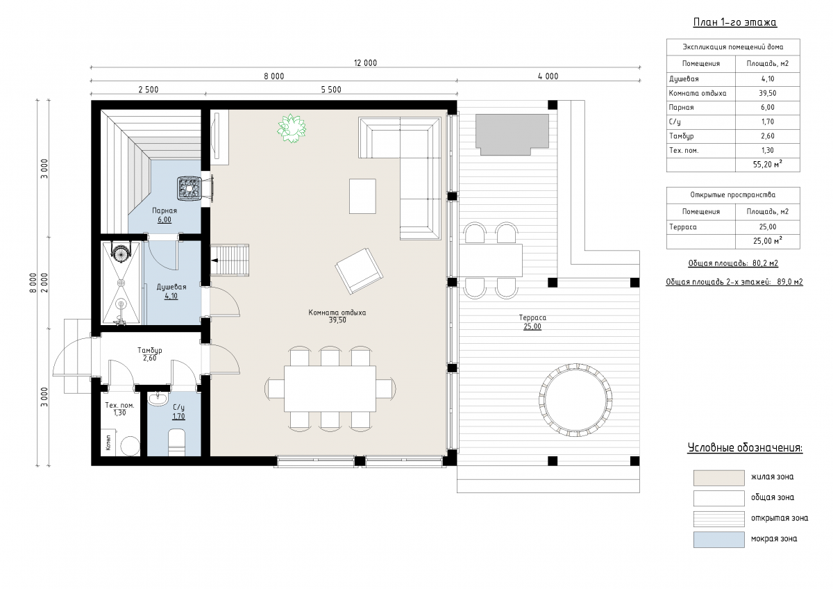включающая зону отдыха и парную.