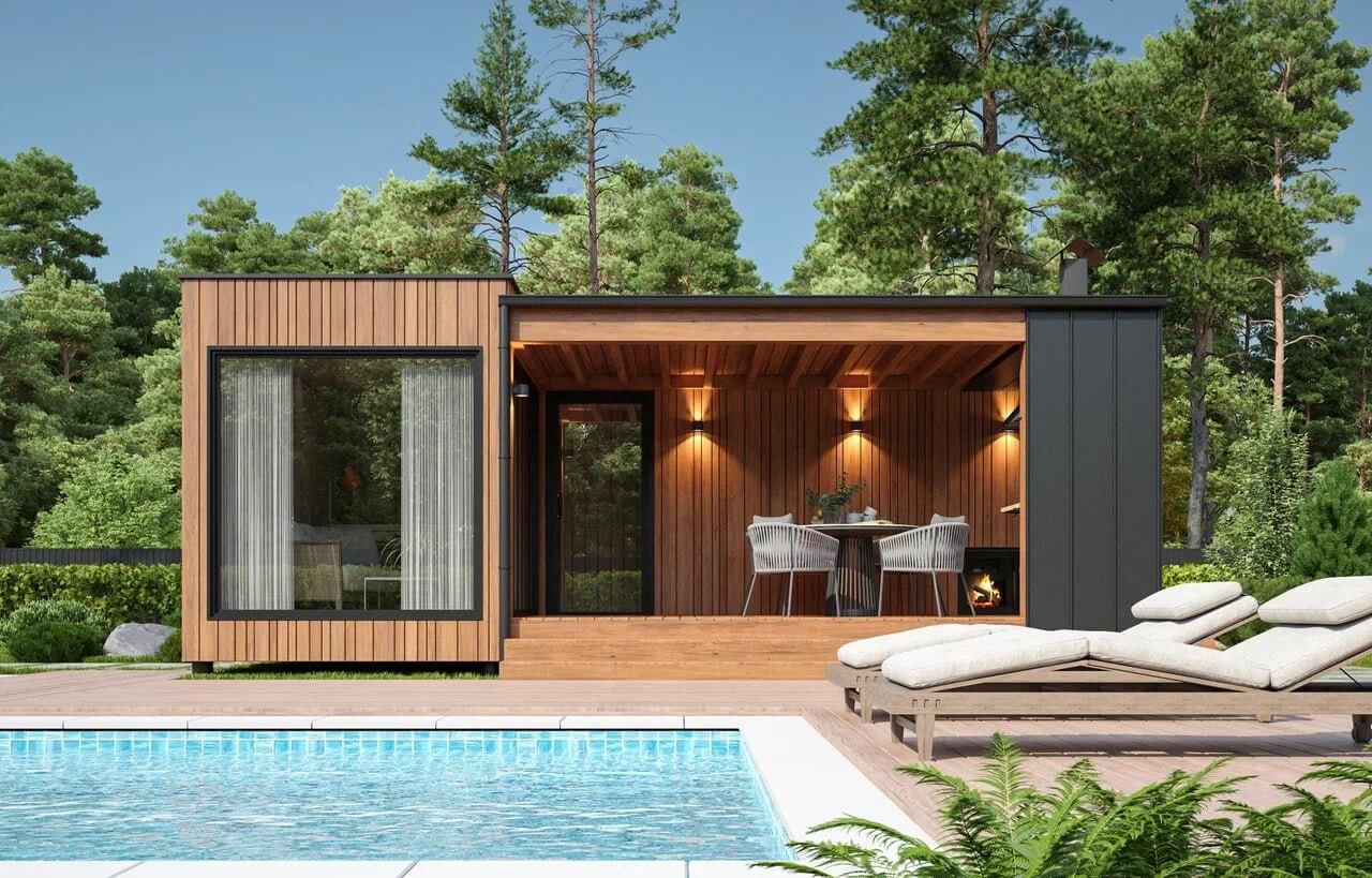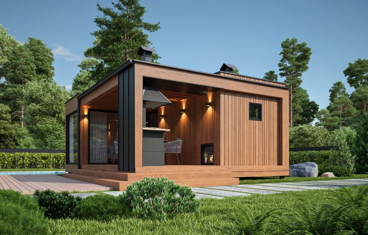 - Модульные бани с террасой