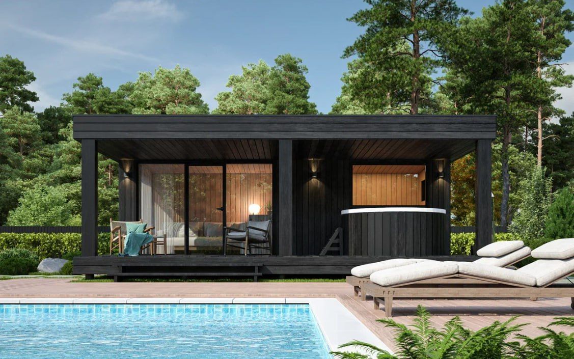 Компактная и одновременно функциональная постройка площадью 35 м² прекрасно впишется как в лесной, так и в дачный участок. Фасад имеет деревянную отделку, подчеркивающую строгую геометрию формы. Отсутствие окон в основных помещениях создаёт камерную атмосферу, усиливая эффект уединения и уюта. Общая площадь внутренних помещений составляет 13 м², включающих просторную комнату отдыха (7,1 м²), компактную душевую с раздевалкой (1,6 м²) и вместительную парную 4,4 м². Закрытая терраса 17,5 м² защищена от непогоды и становится полноценным пространством для отдыха в любое время года — здесь можно разместить обеденную группу, лаунж-зону или место для вечерних посиделок с семьей и друзьями. Двухмодульная конструкция обеспечивает быструю установку за 1–3 дня без сложных строительных работ. Panorama 03 отлично подойдёт как для уединённого семейного отдыха, так и для небольшой компании, а также как коммерческий объект для посуточной аренды или размещения в глэмпинг-комплексе.-
