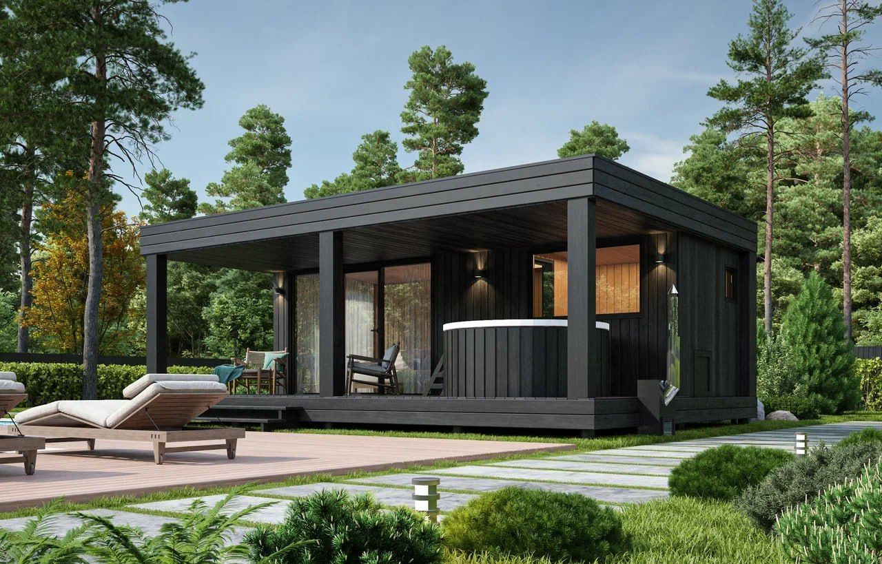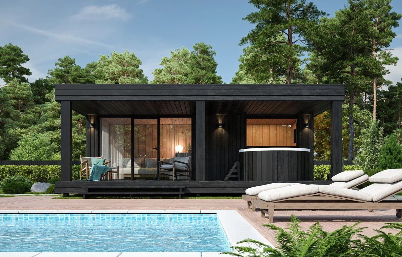 Баня Panorama 05 выполнена в минималистичном стиле, при этом увеличенная площадь внутренних помещений и наличие отдельного санузла создают повышенный уровень комфорта и функциональности.