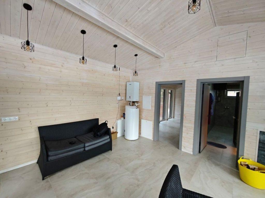 - Чистовая отделка: Имитация бруса , потолок вагонка, пол плитка